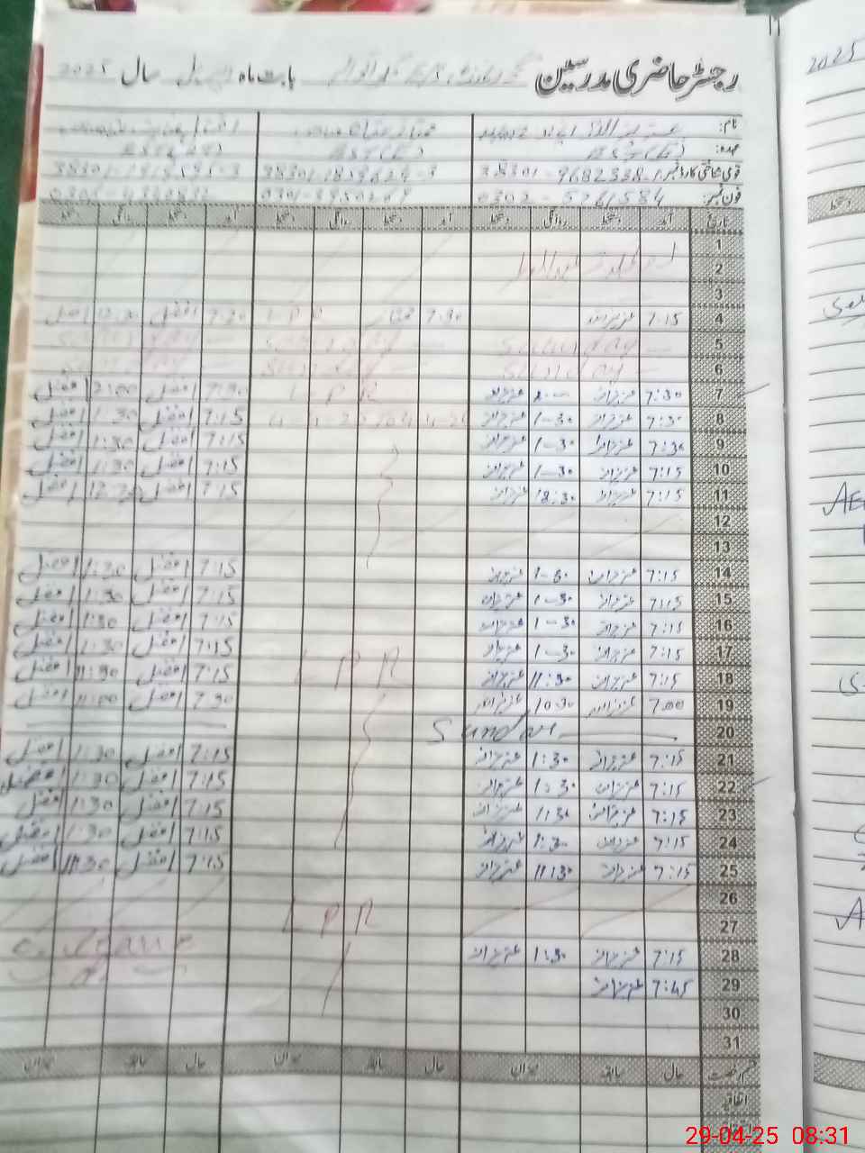 | Name: Aa**** Hu**** Designation: (School Headmaster's/Headmistress's) EST Phone/Cell Number: 03**** |