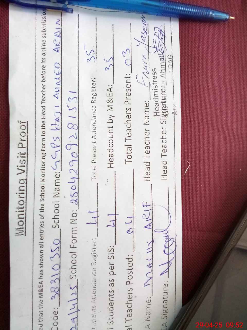 | EMIS Code: 38310350 | Name of School: GGPS HAJI AHMED ARAIN WALA | |||