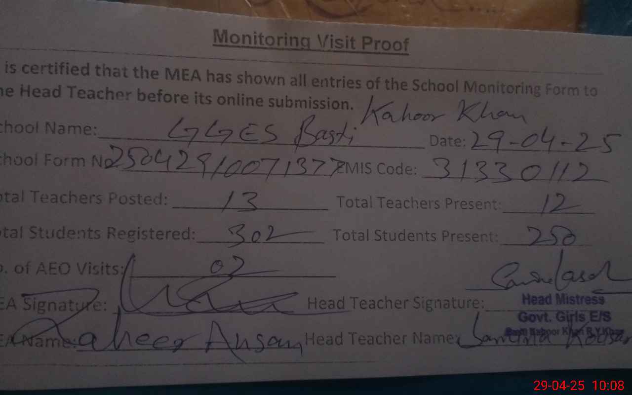 | EMIS Code: 31330112 | Name of School: GGES BASTI KAHORE KHAN | |||