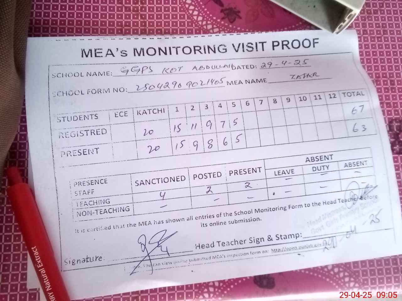| EMIS Code: 36420373 | Name of School: GGPS KOT ABDULLAH, KHANEWAL | |||