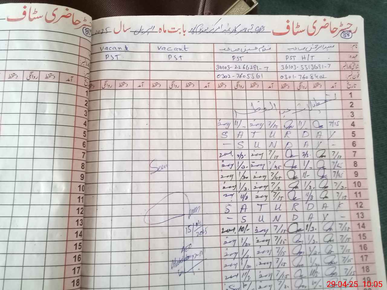 | Name: Ub**** UrRe**** Designation: (School Headmaster's/Headmistress's) PST Phone/Cell Number: 03**** |