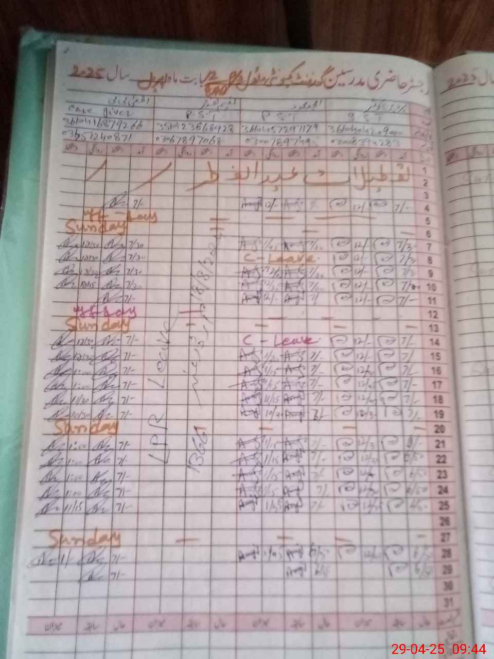 | CNIC | Full Name | Designation | R/C | Absence During Last Calender Month |