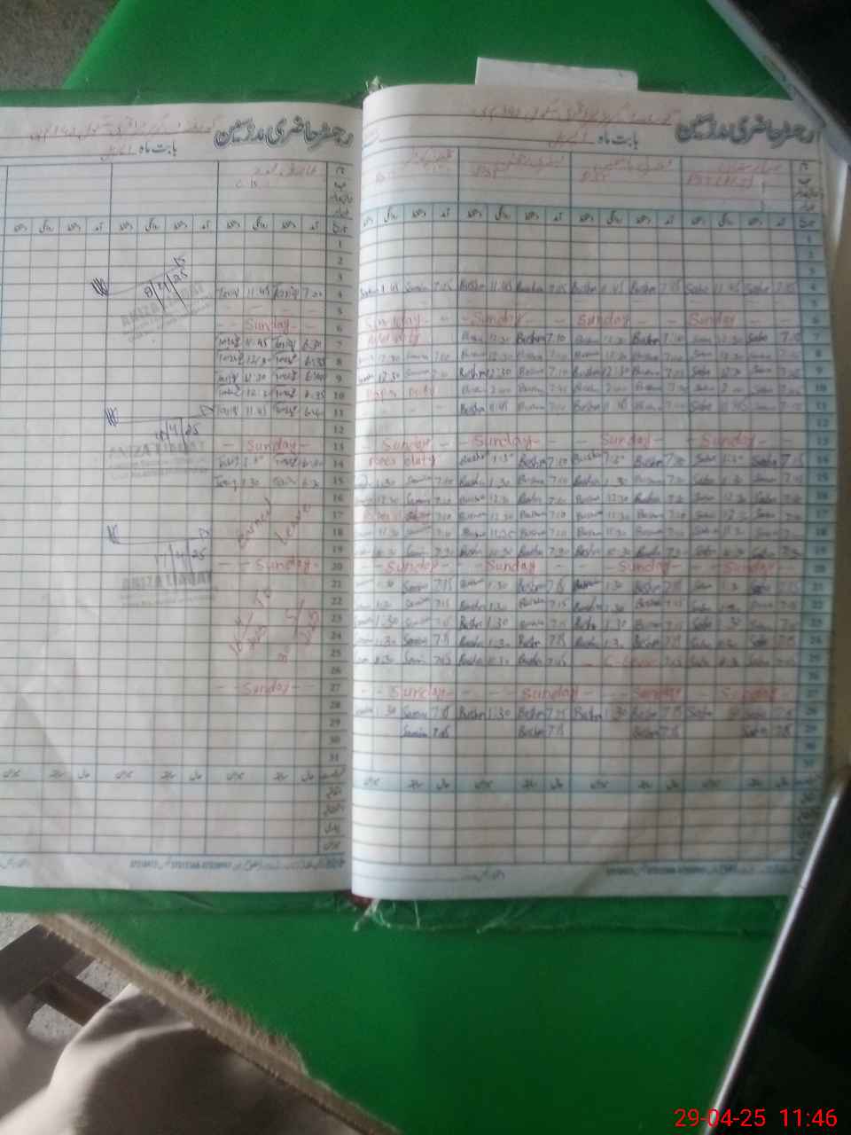 | CNIC | Full Name | Designation | R/C | Absence During Last Calender Month |