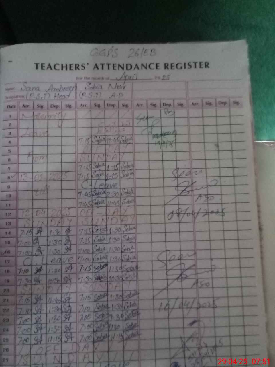 | Name: SA**** AM**** Designation: (School Headmaster's/Headmistress's) PST Phone/Cell Number: 03**** |