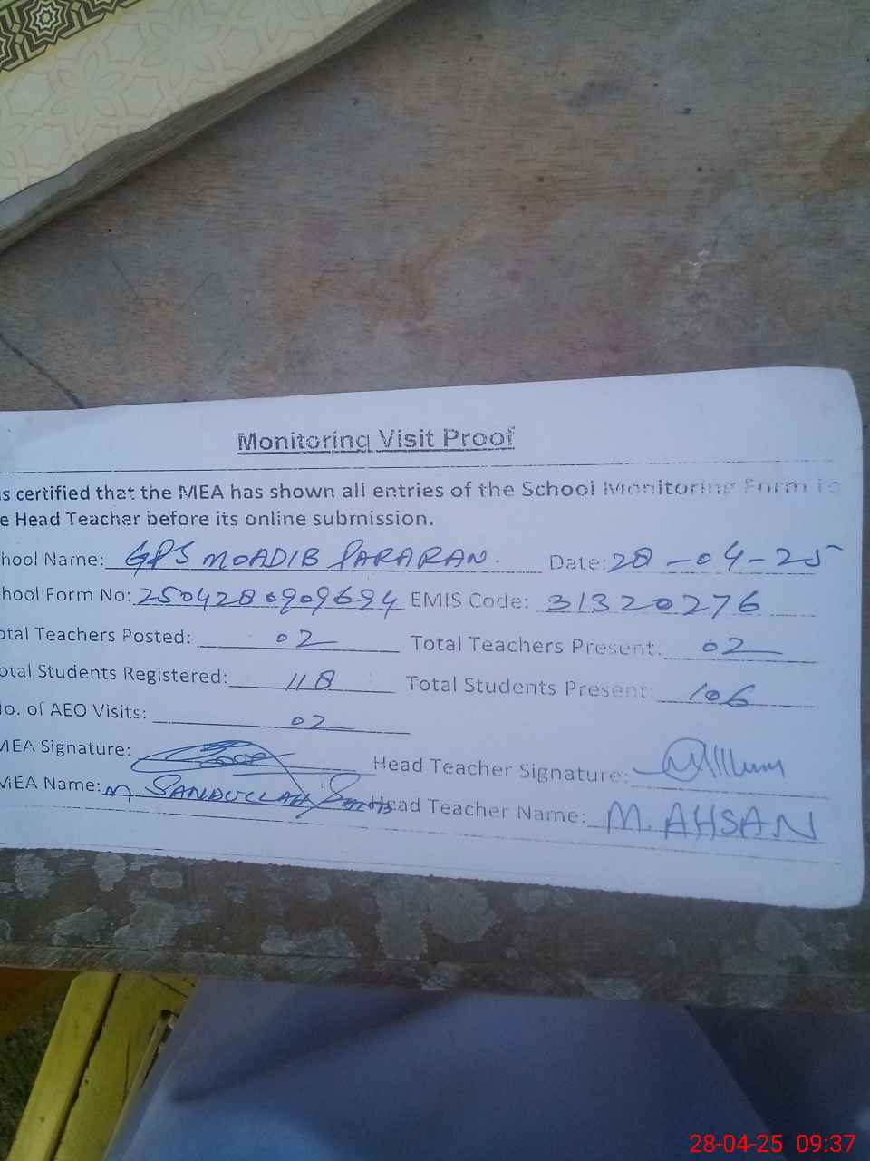 | EMIS Code: 31320276 | Name of School: GPS MOADIB PARAN SHARIF | |||