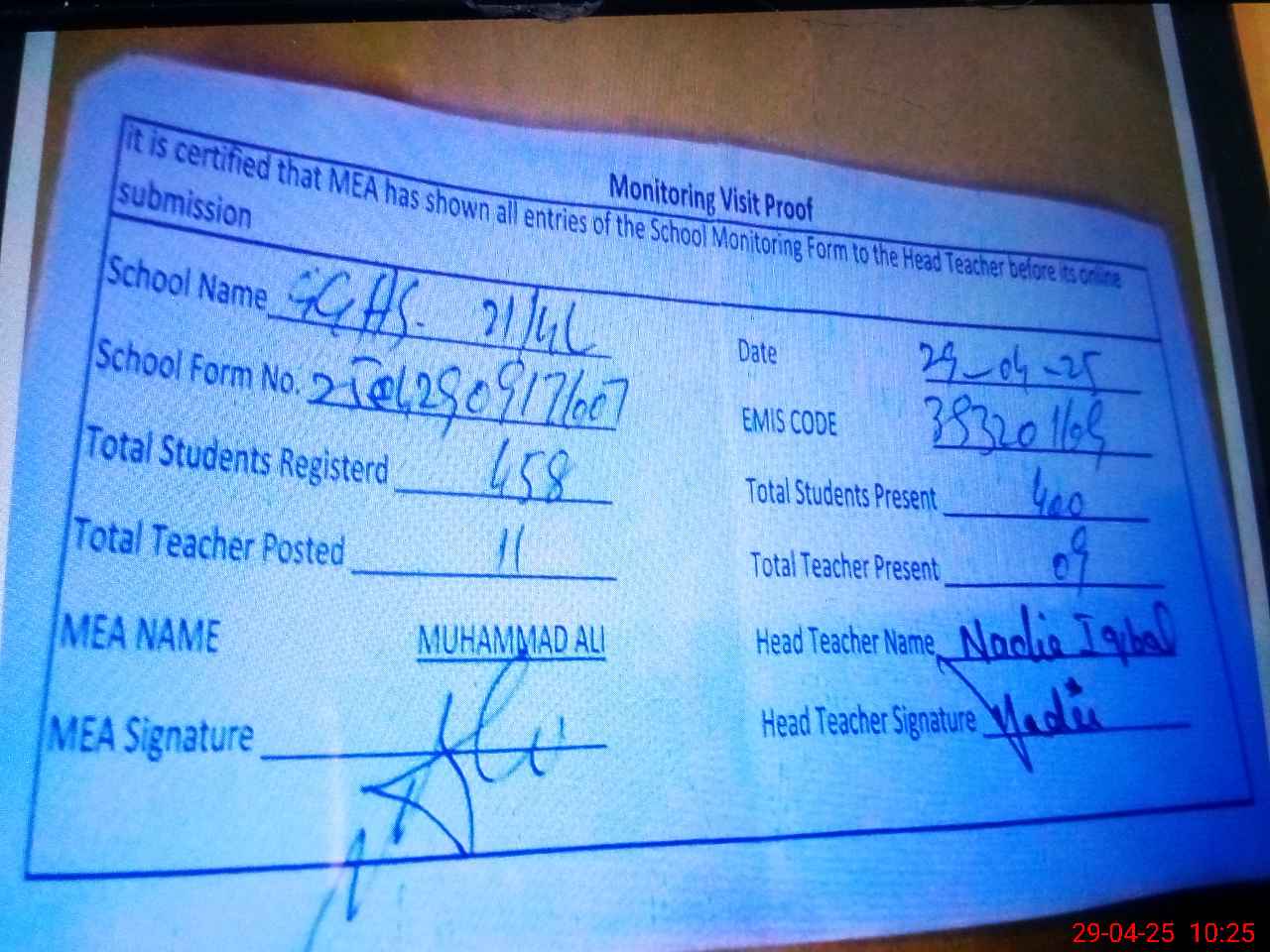 | EMIS Code: 39320169 | Name of School: GGHS CHAK NO. 21/4-L | |||