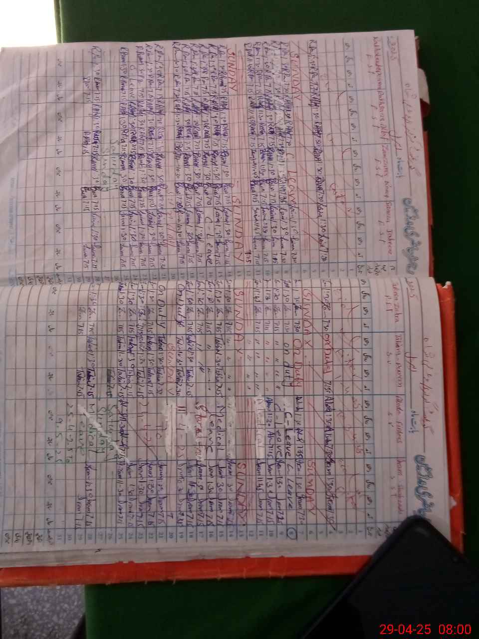 | Leave | Duty | Absent | Maternity | Medical | Ex- Pak |