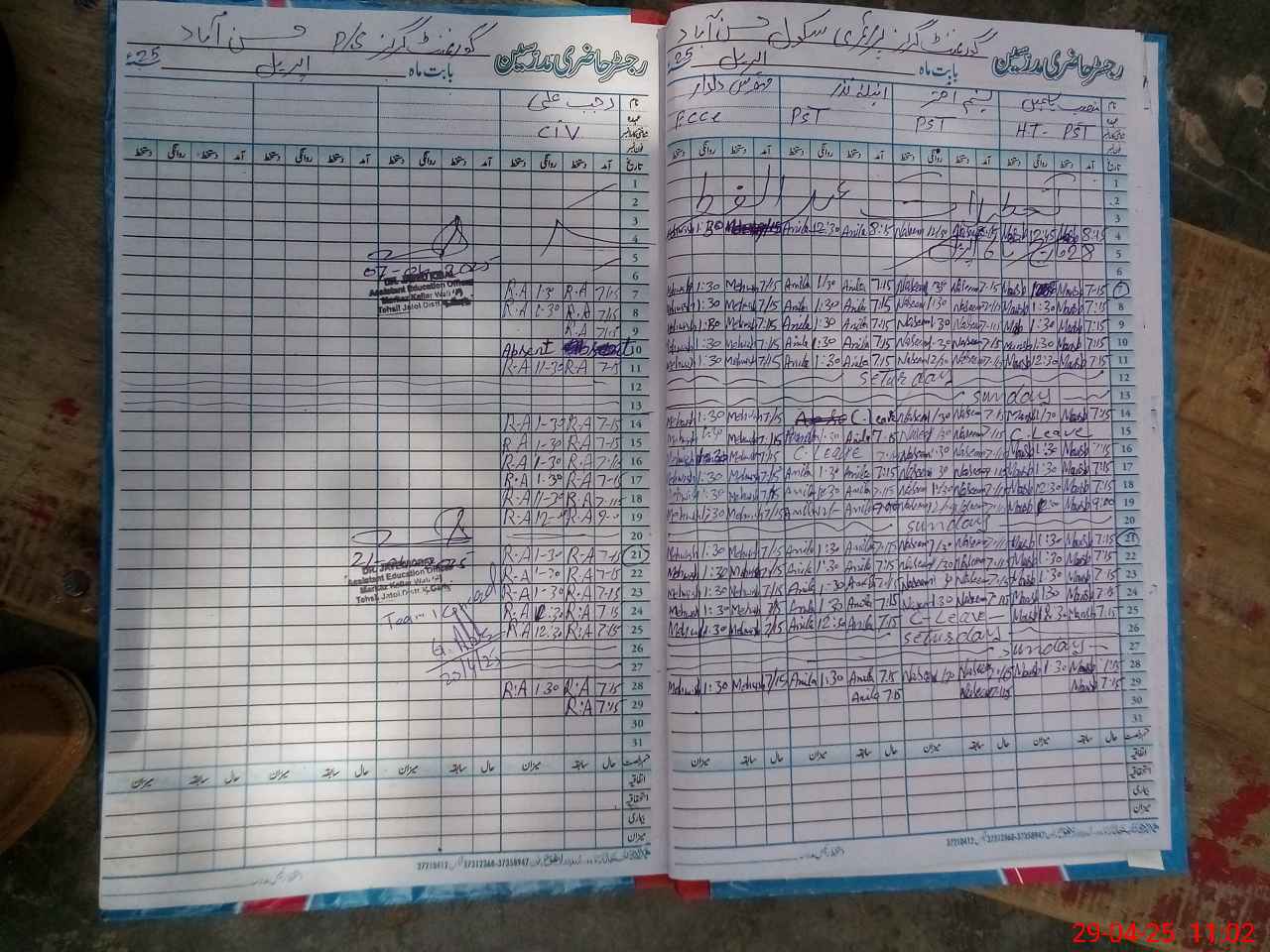 | CNIC | Full Name | Designation | R/C | Absence During Last Calender Month |