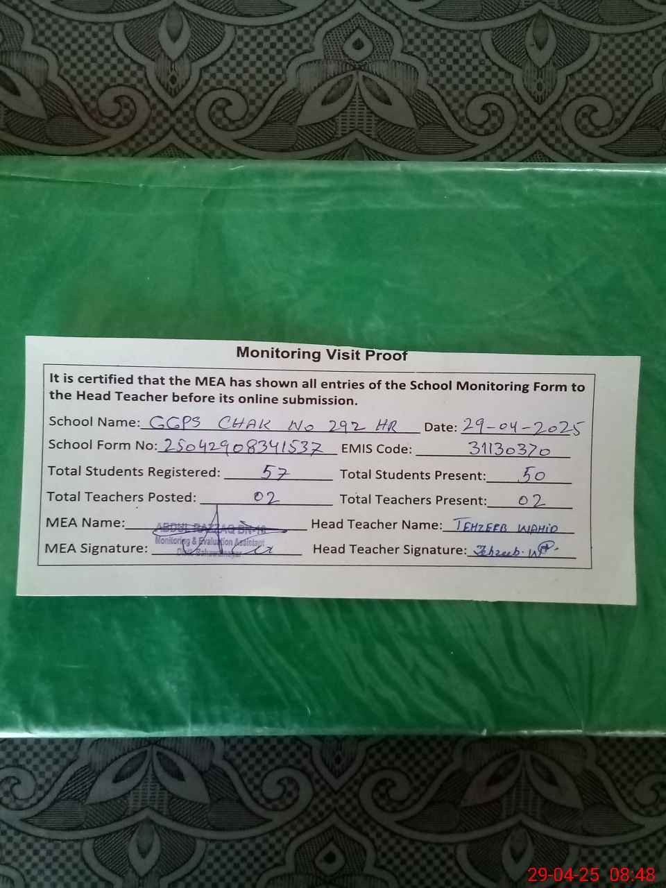 | EMIS Code: 31130370 | Name of School: GGPS CHAK NO 292/HR | |||