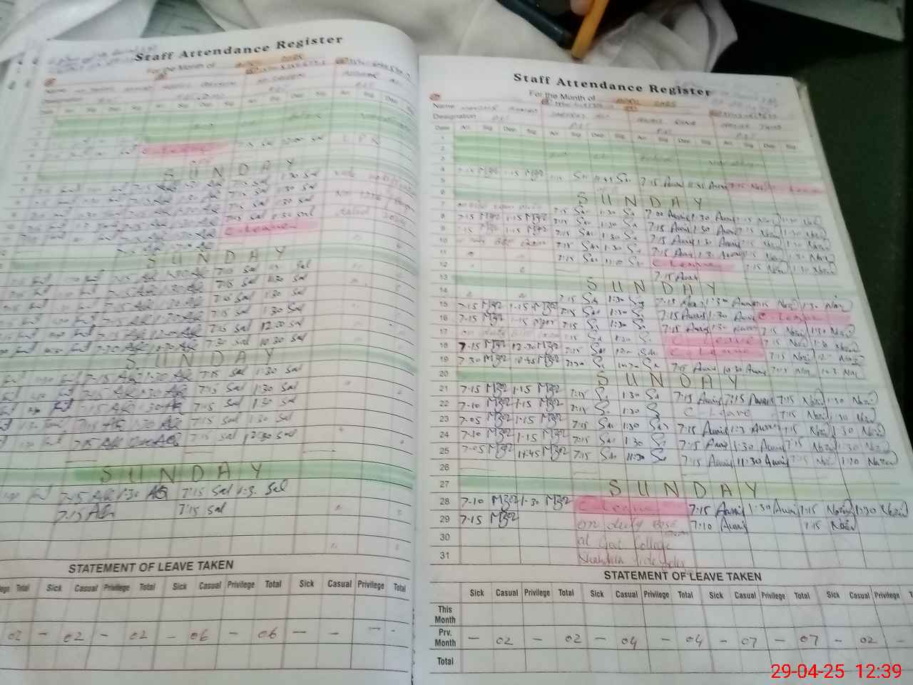 | 35**** | Sa**** Al**** | 1 | 1 | 0 | 0 | 0 | 0 | 0 | 0 | 0 | 0 | 0 | Exam Duty |
