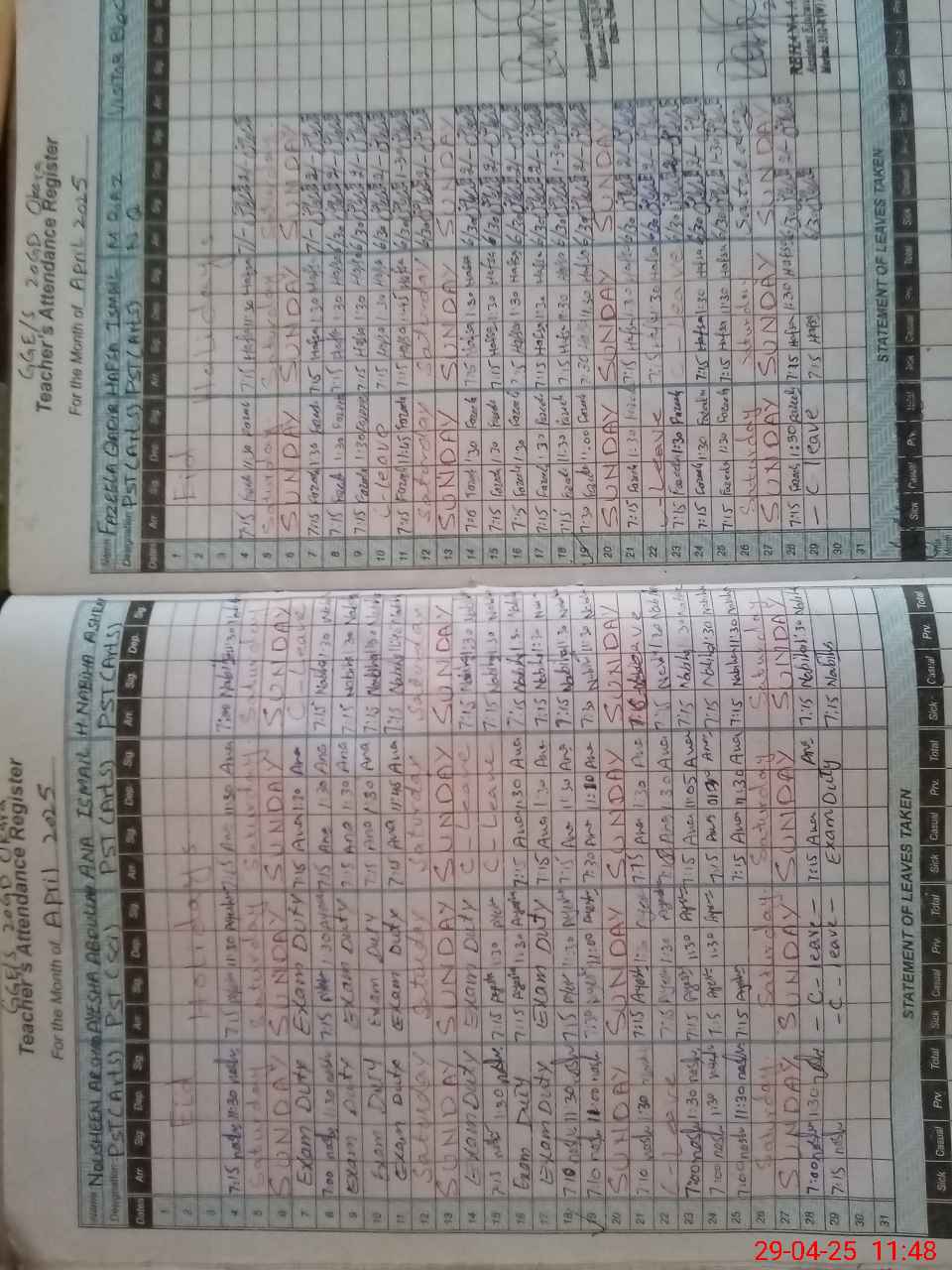 | 31**** | An**** Is**** | PST | Regular | 0 | 0 | 0 | 0 | 0 | 0 | 0 | 0 | 0 | Exam Duty |