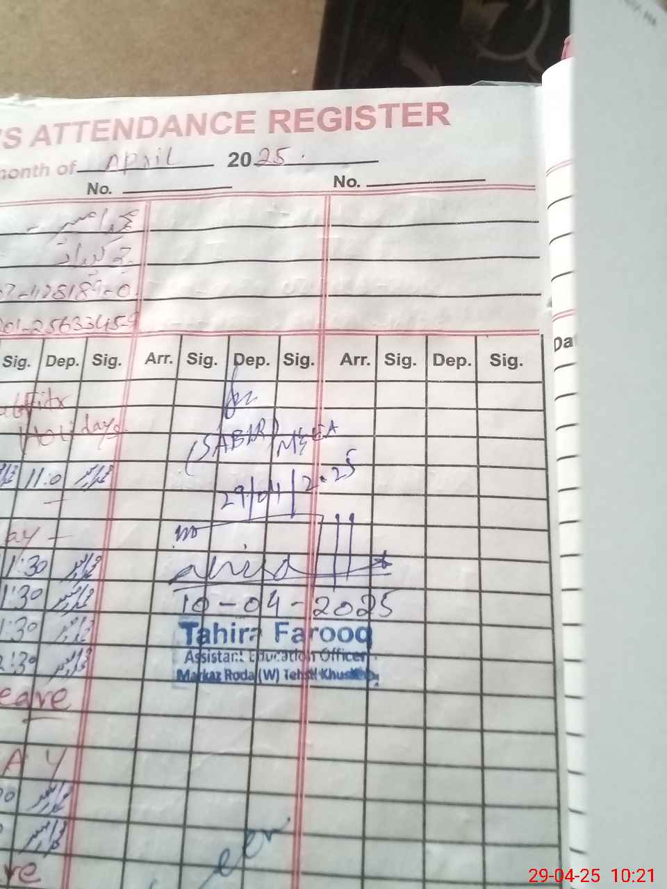 | CNIC | Full Name | Designation | R/C | Absence During Last Calender Month |