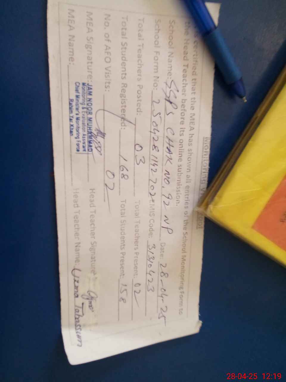 | EMIS Code: 31310423 | Name of School: GGPS CHAK NO. 92/NP | |||