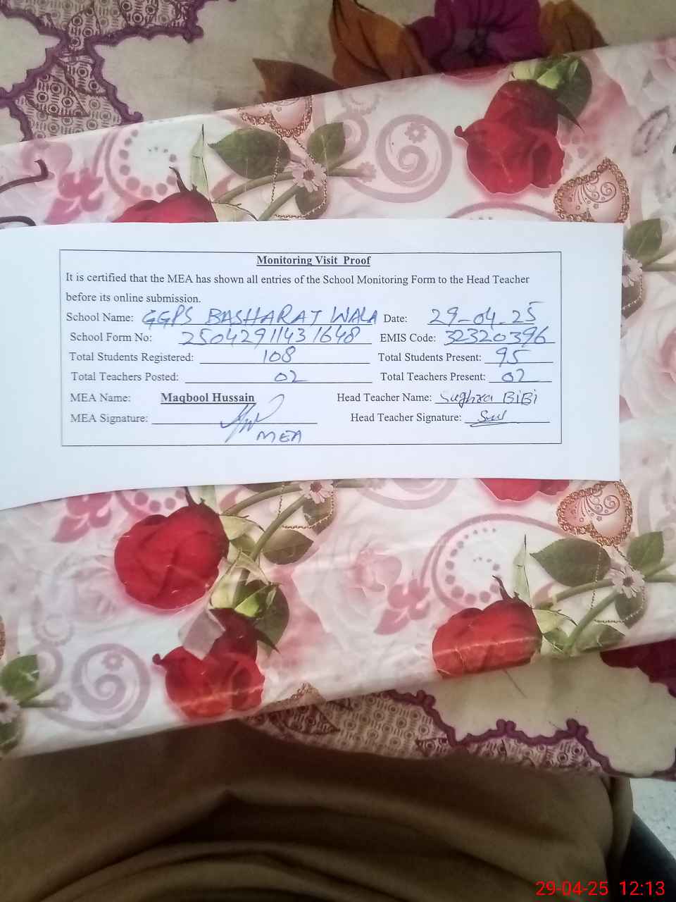 | EMIS Code: 32320396 | Name of School: GGPS BASHARAT WALA | |||