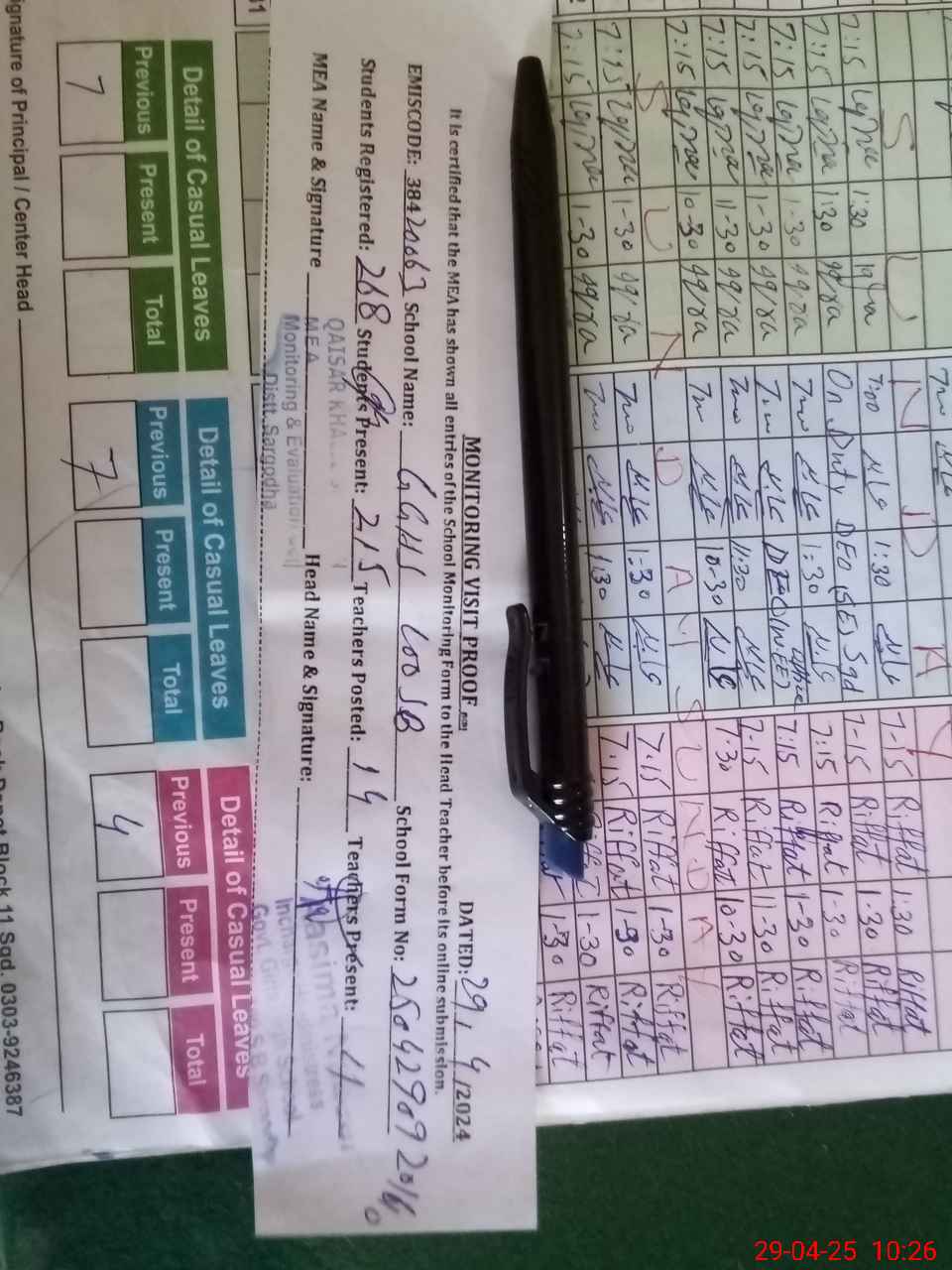 | Name: AS**** NA**** Designation: (School Headmaster's/Headmistress's) I/C (SST) Phone/Cell Number: 03**** |