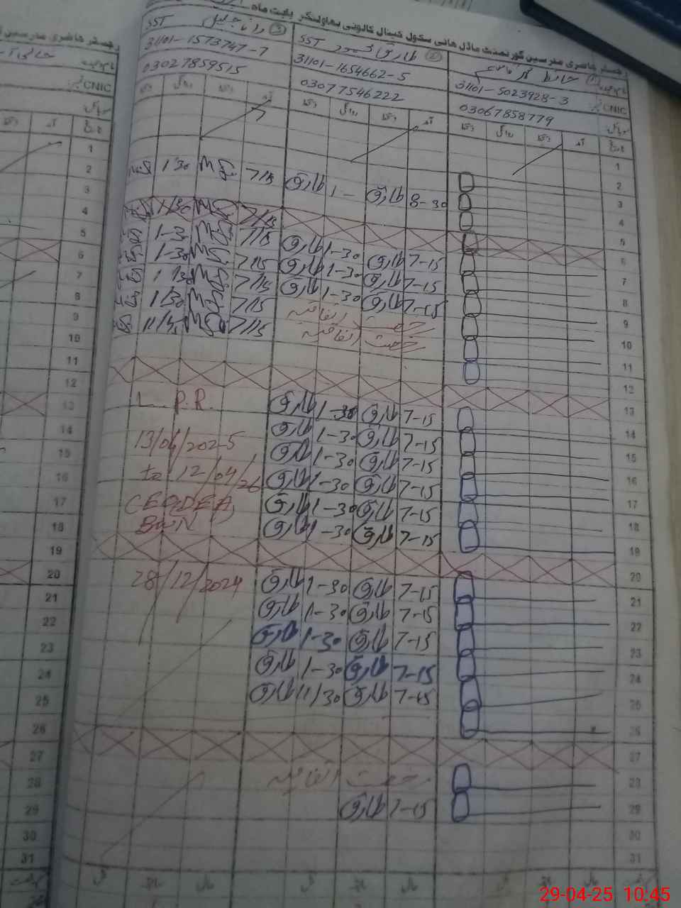 | CNIC | Full Name | Designation | R/C | Absence during last cal. month |