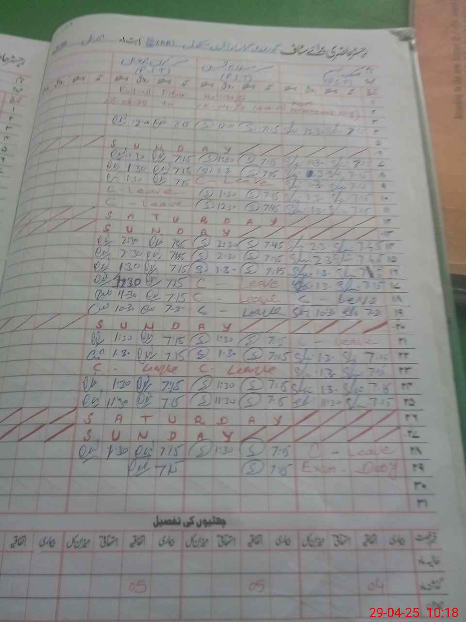 | 31**** | Sa**** Ta**** | 1 | 1 | 0 | 0 | 0 | 0 | 0 | 0 | 0 | 0 | 0 | Exam Duty |