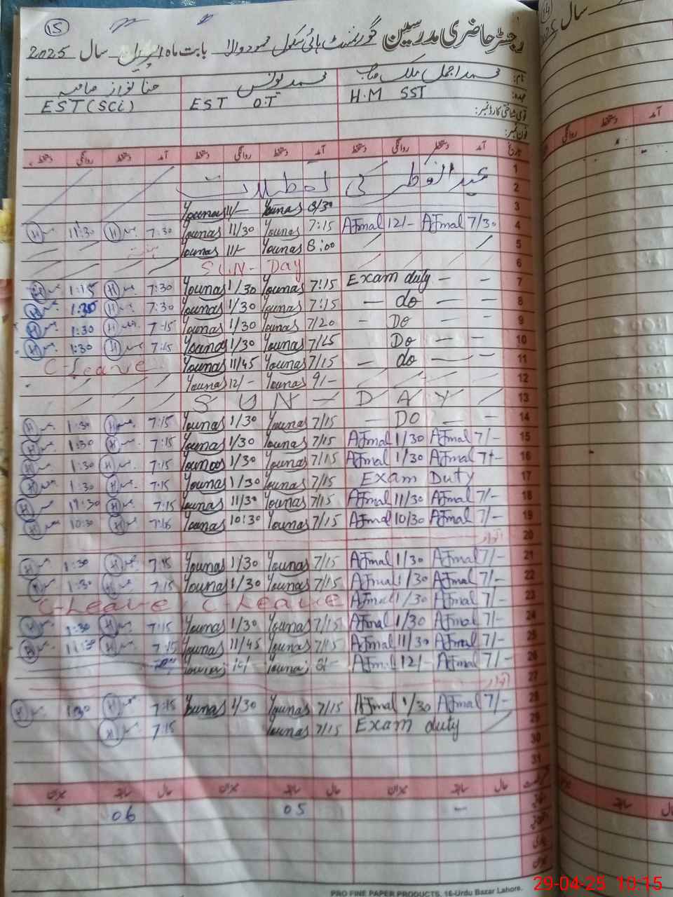 | 31**** | Mu**** Aj**** Ma**** | 1 | 0 | 17 | 0 | 0 | 0 | 0 | 0 | 0 | 0 | Exam Duty | |