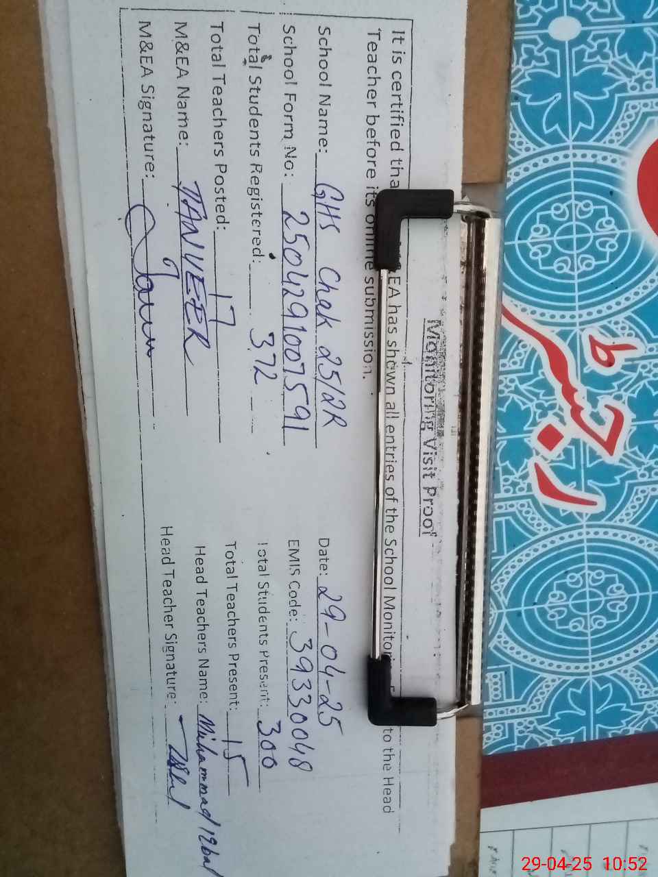 | EMIS Code: 39330048 | Name of School: GHS CHAK NO. 25/2-R | |||