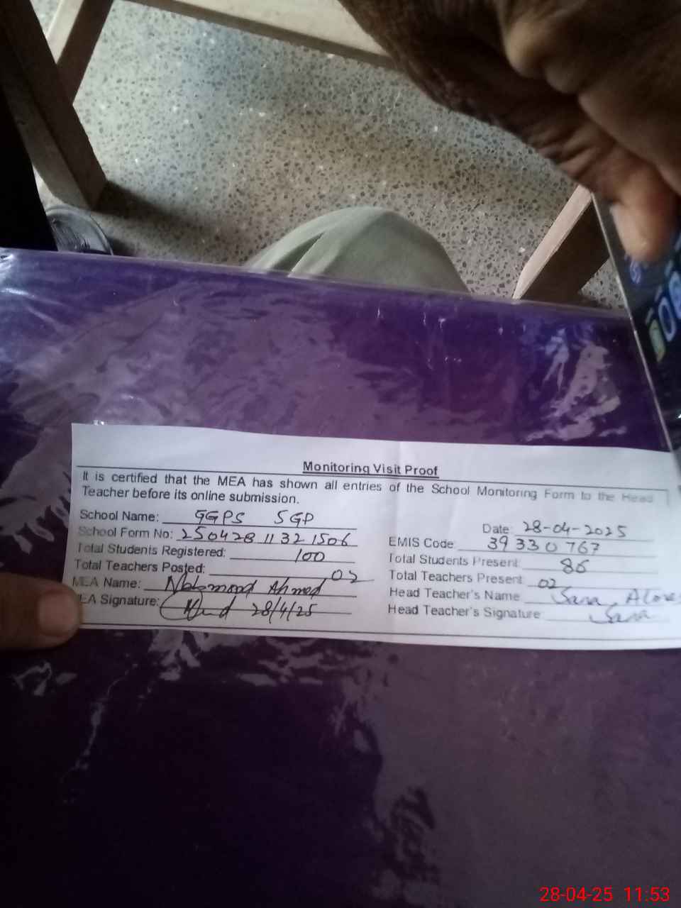 | EMIS Code: 39330767 | Name of School: GGPS CHAK NO. 5/G.D | |||