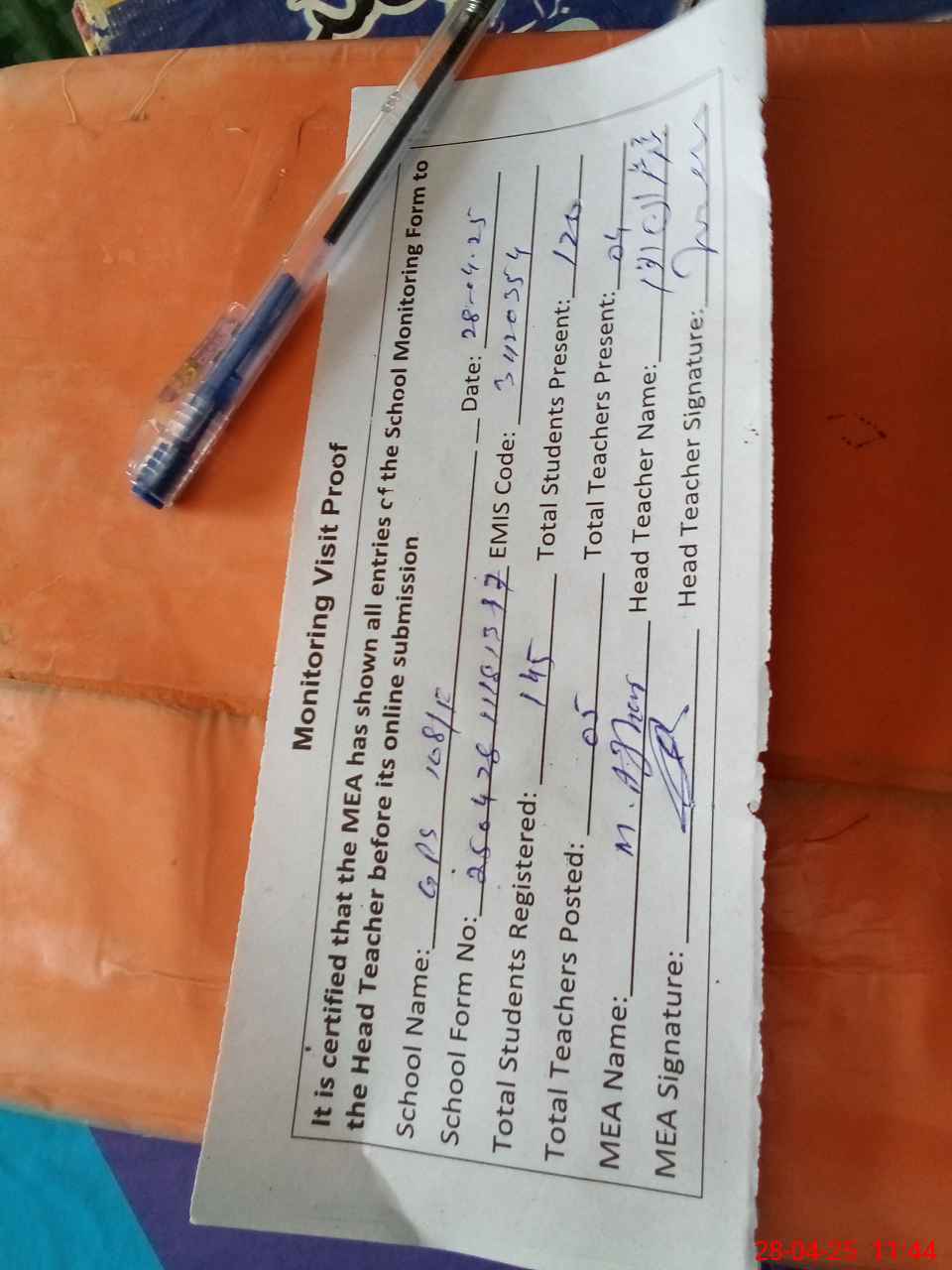 | EMIS Code: 31120354 | Name of School: GPS CHAK NO 108 F | |||