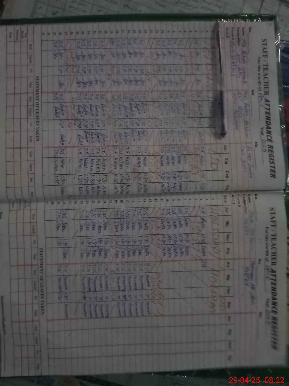 | CNIC | Full Name | Designation | R/C | Absence During Last Calender Month |