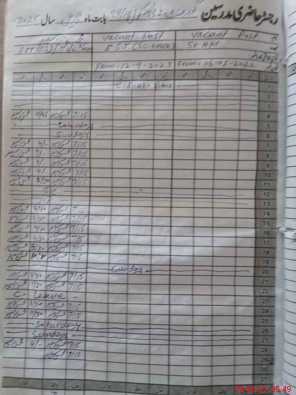 | CNIC | Full Name | Designation | R/C | Absence During Last Calender Month |
