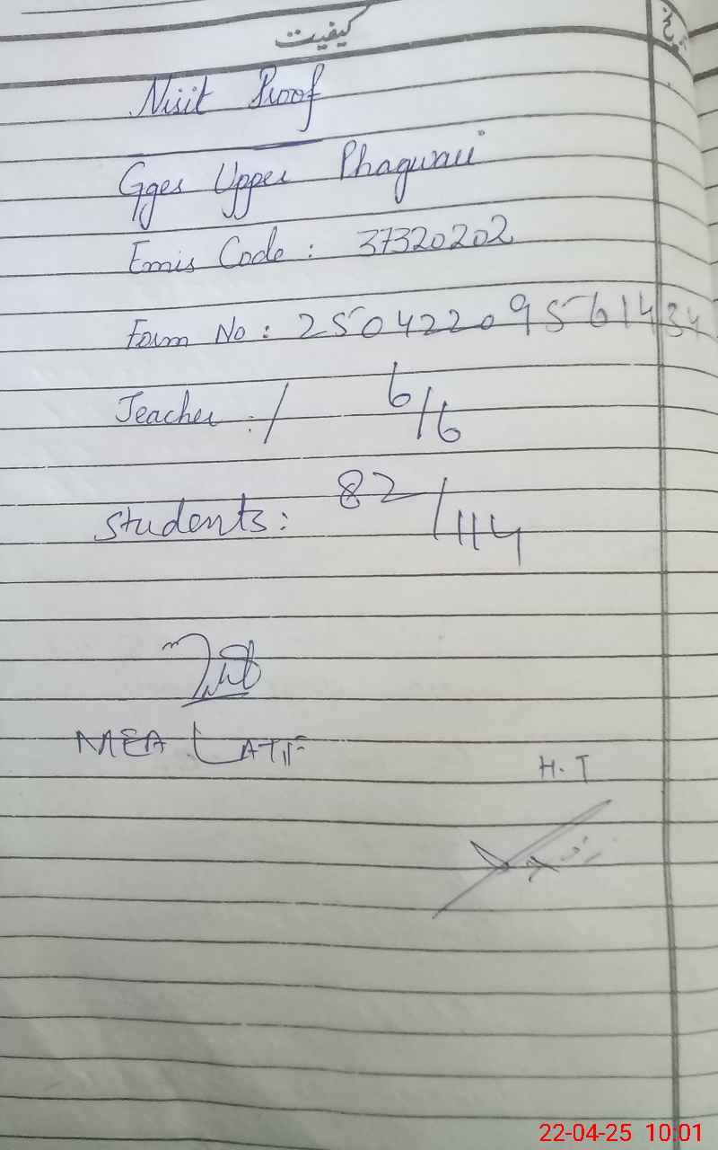 | EMIS Code: 37320202 | Name of School: GGES UPPER PAGHWARI | |||