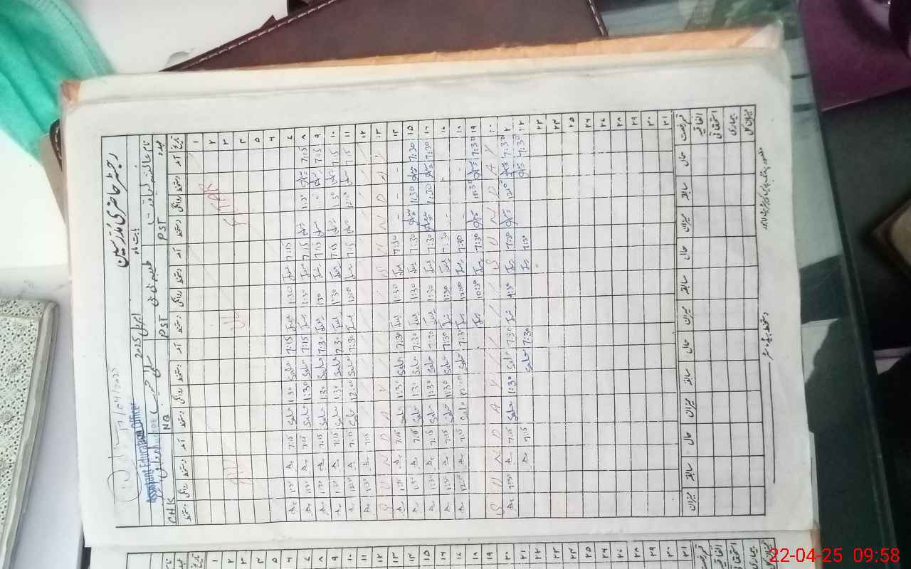 | CNIC | Full Name | Designation | R/C | Absence During Last Calender Month |