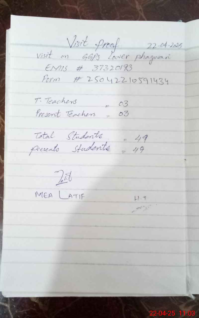 | EMIS Code: 37320193 | Name of School: GGPS LOWER PAGHWARI | |||