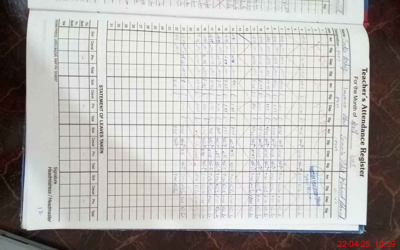 | Name: Sa**** As**** Designation: (School Headmaster's/Headmistress's) ESE (arts) Phone/Cell Number: 03**** |