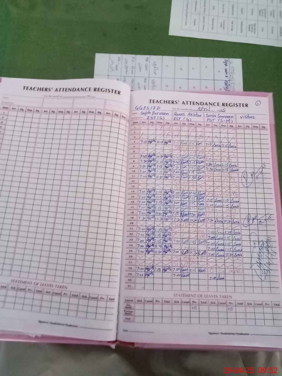 | Monitoring Date: 29-04-2025 | Start Time: 29-04-2025 09:31 AM | End Time: 29-04-2025 09:55 AM | Name of MEA: Ra**** Ha**** | |