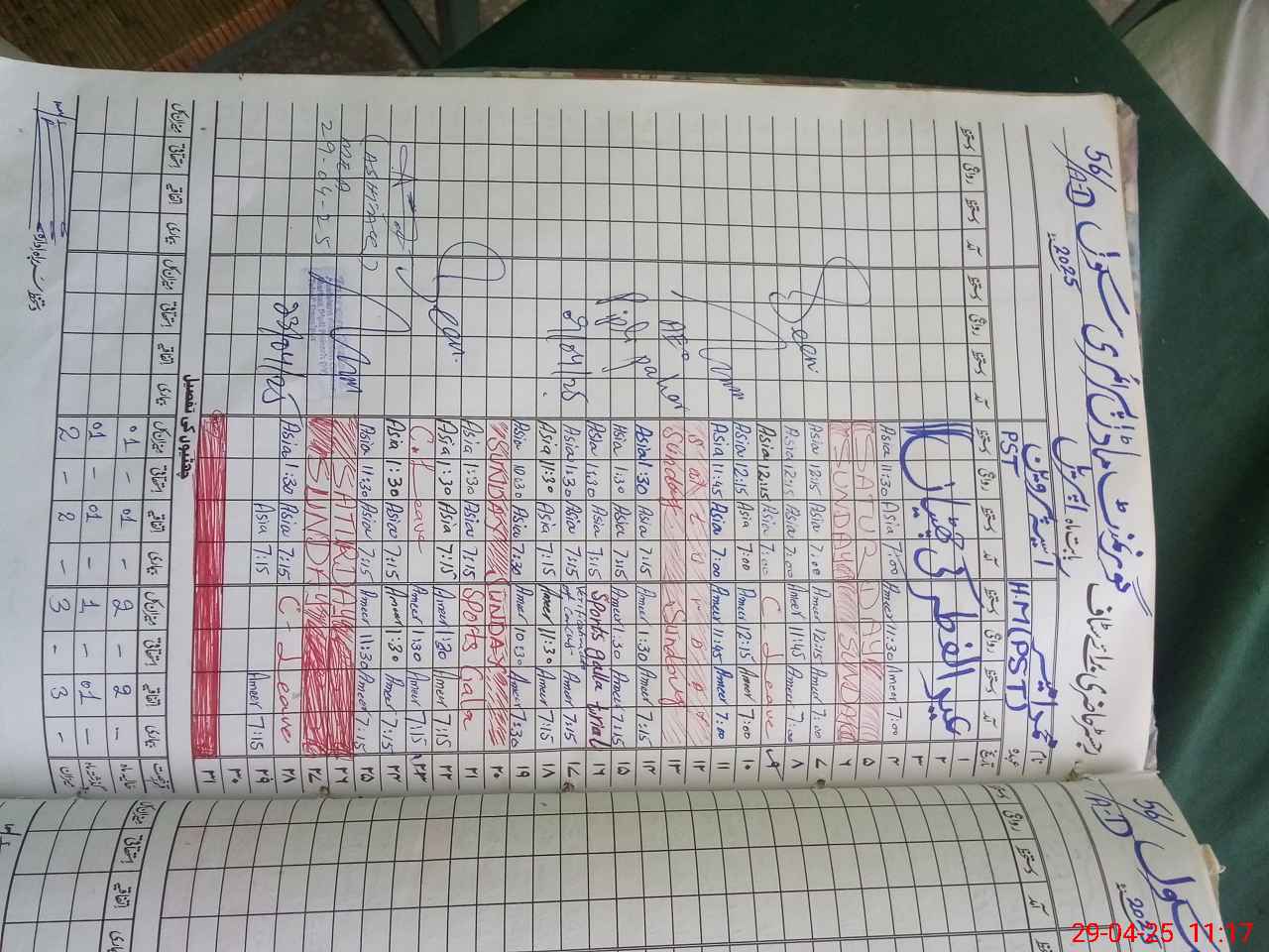 | Leave | Duty | Absent | Maternity | Medical | Ex- Pak |