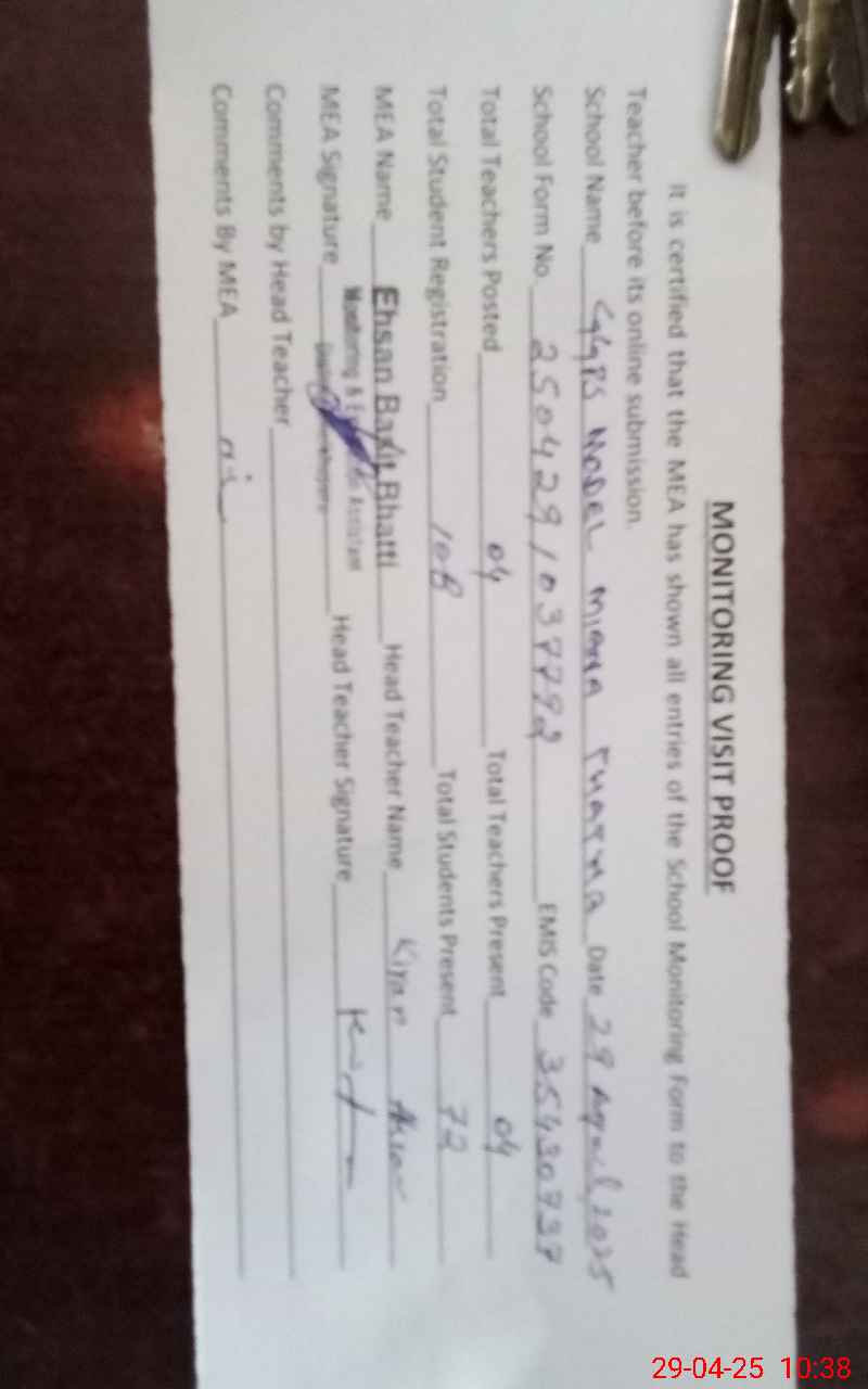 | Attendance Register | Head Teacher | MEA with School | Visit Proof |