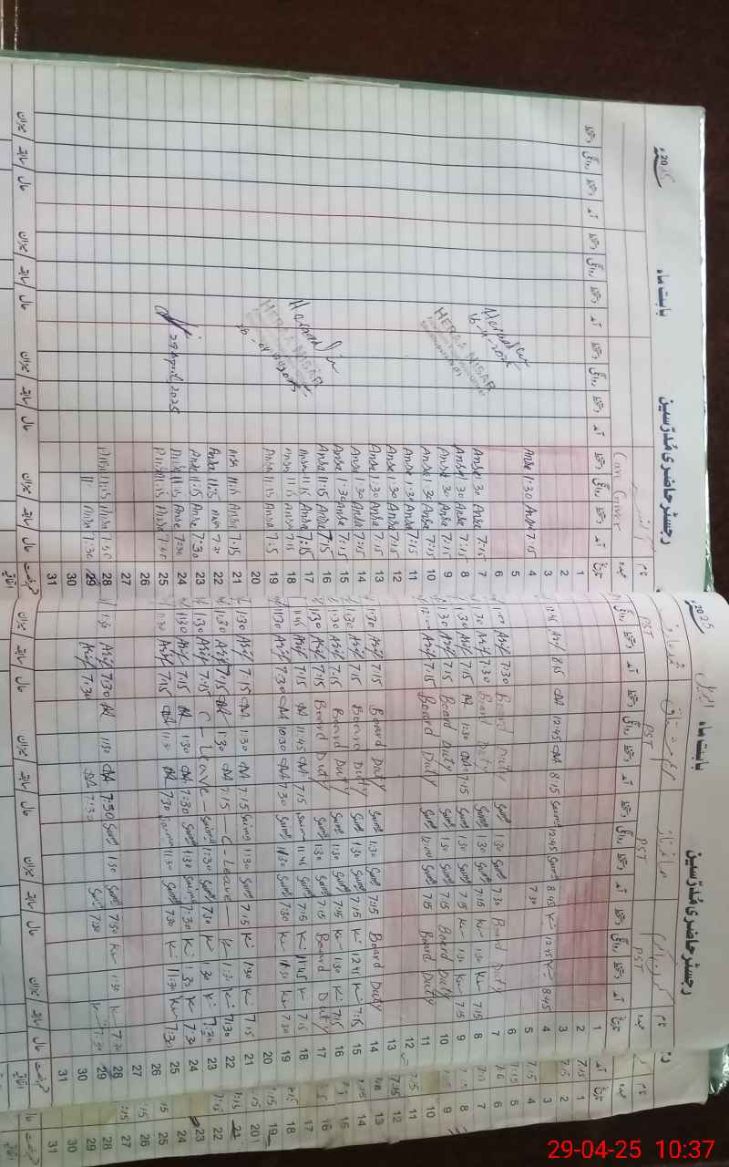 | CNIC | Full Name | Designation | R/C | Absence during last cal. month |