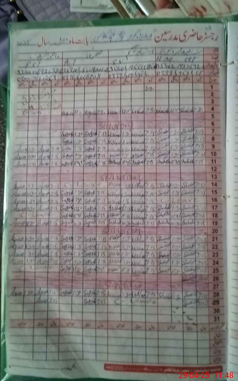 | CNIC | Full Name | Designation | R/C | Absence During Last Calender Month |