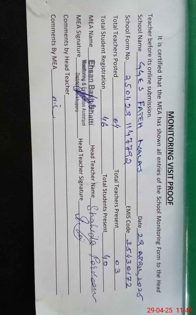 | EMIS Code: 35430172 | Name of School: GGES FATEH KALAS | |||