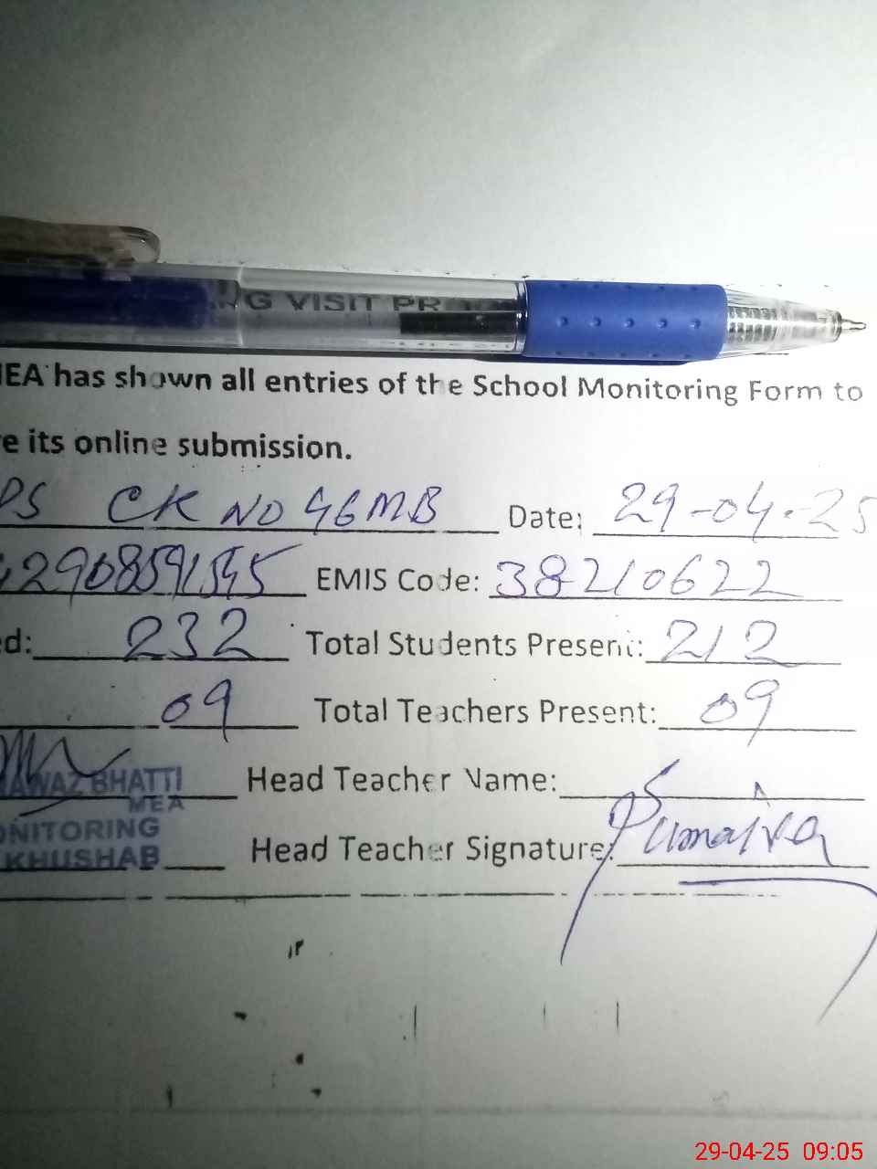 | EMIS Code: 38210622 | Name of School: GGPS CHAK NO 46 MB | |||
