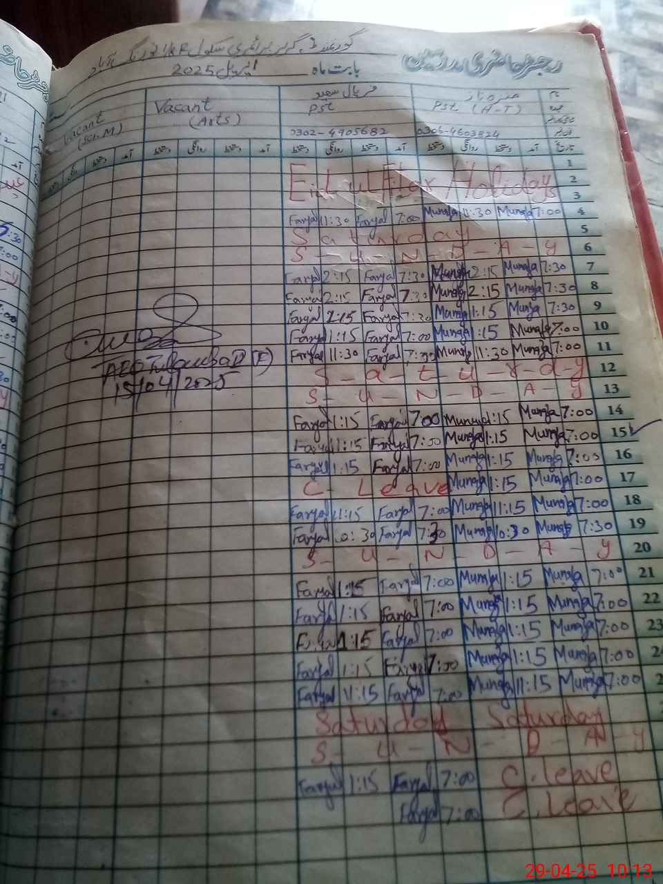 | Name: MU**** NA**** Designation: (School Headmaster's/Headmistress's) ESE ARTS Phone/Cell Number: 03**** |