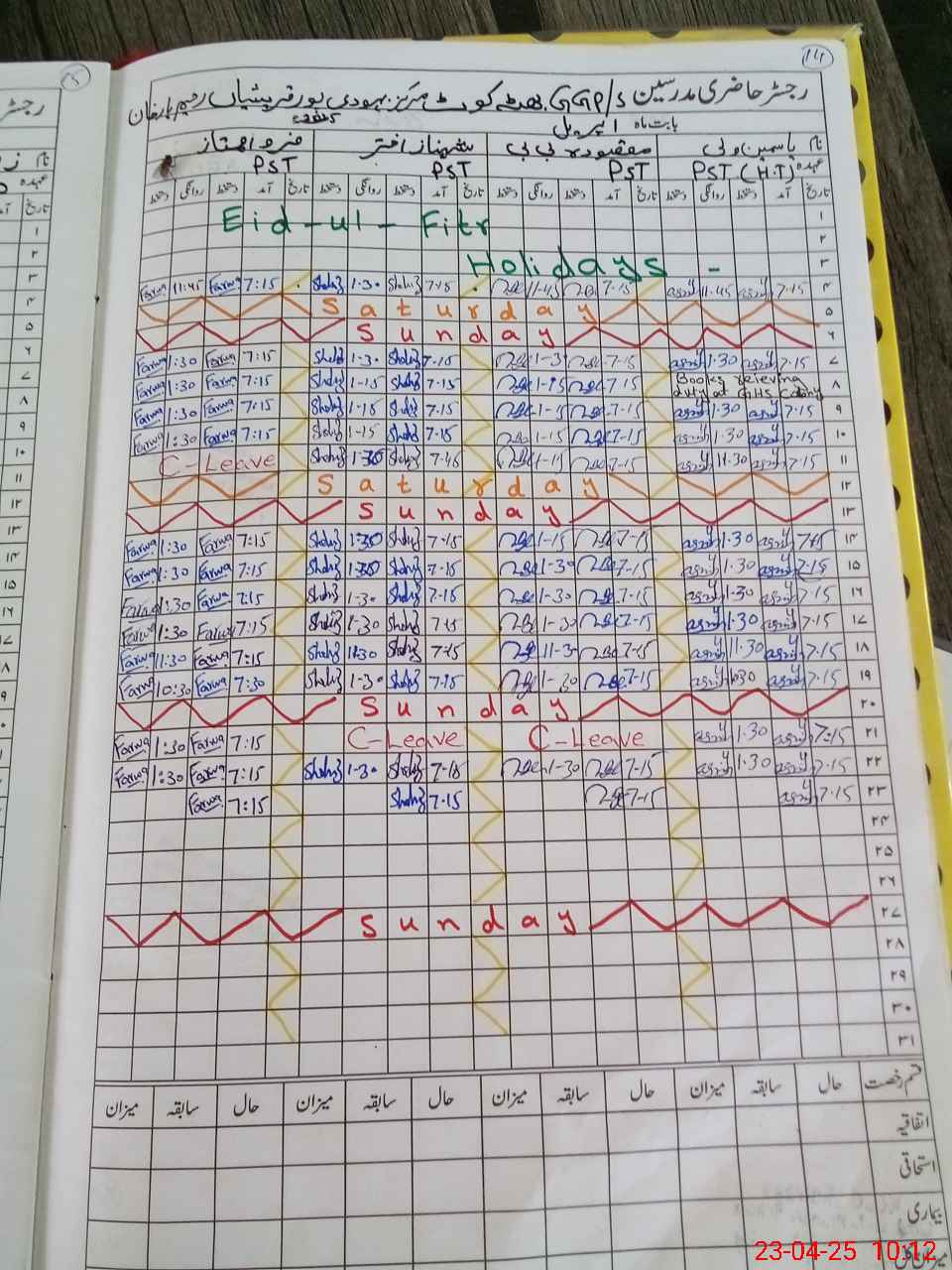 | CNIC | Full Name | Designation | R/C | Absence During Last Calender Month |