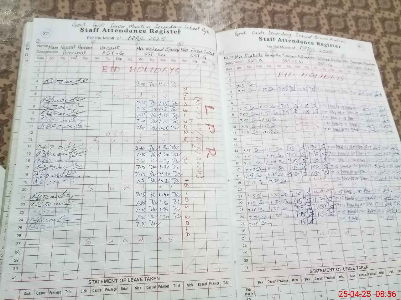 | Leave | Duty | Absent | Maternity | Medical | Ex- Pak |
