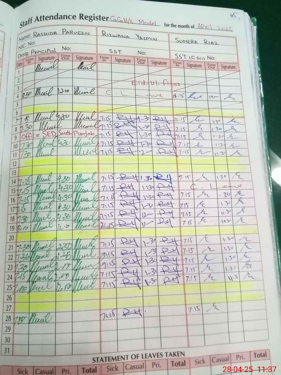 | 31**** | Al**** No**** | SSE | Contract | 0 | 0 | 0 | 0 | 0 | 0 | 0 | 0 | 0 | Exam Duty |