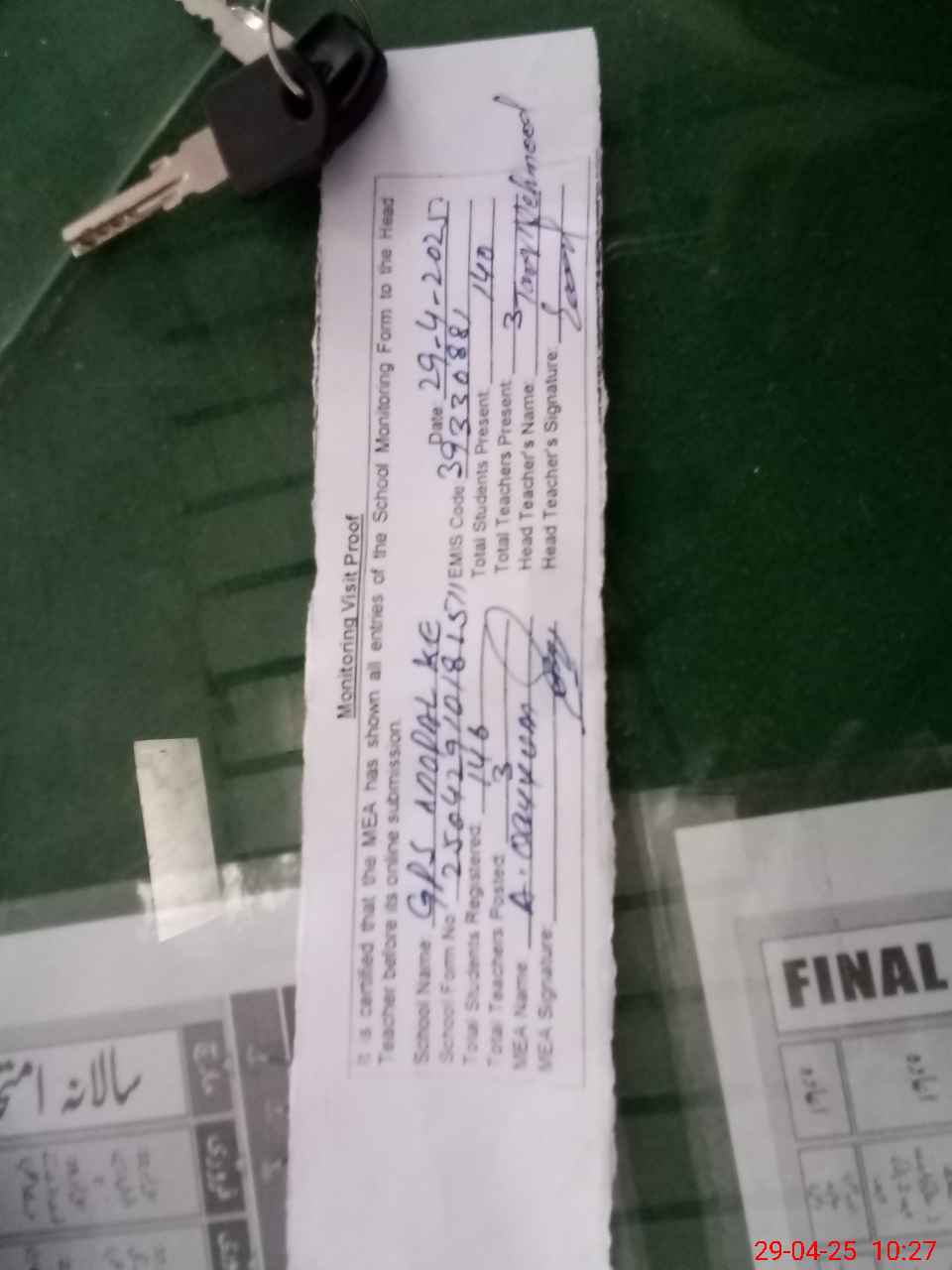 | EMIS Code: 39330881 | Name of School: GPS MOPAL KEY | |||