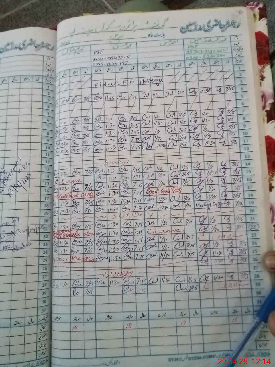 | Name: Mu**** Al**** Hu**** Designation: (School Headmaster's/Headmistress's) PST Phone/Cell Number: 03**** |