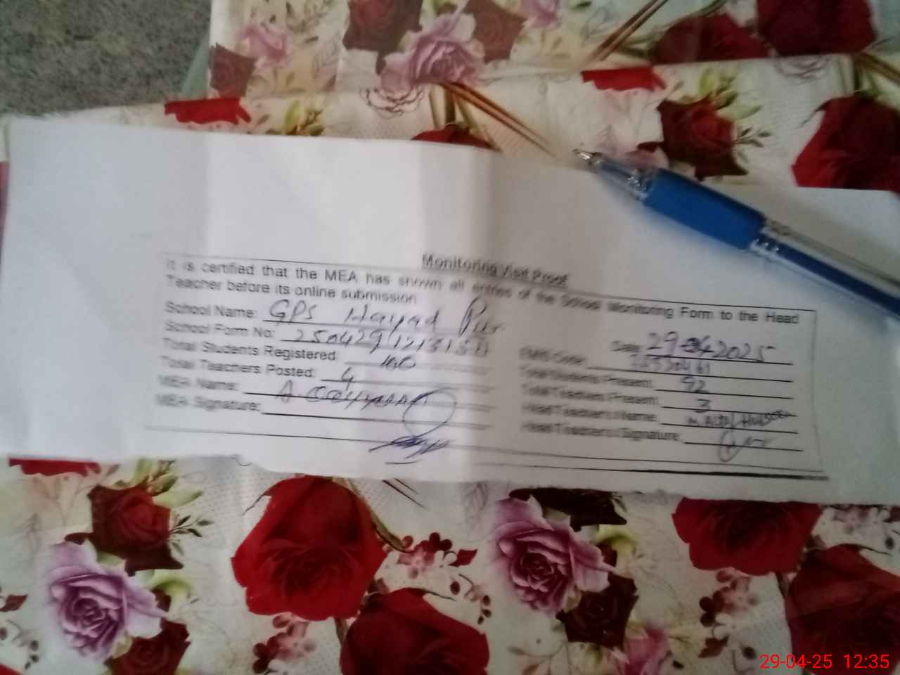 | EMIS Code: 39330461 | Name of School: GPS HAYAT PUR | |||