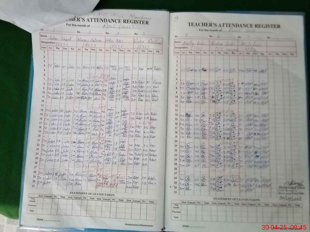 | 36**** | Ha**** Na**** | 1 | 1 | 0 | 0 | 0 | 0 | 0 | 0 | 0 | 0 | 0 | Exam Duty |
