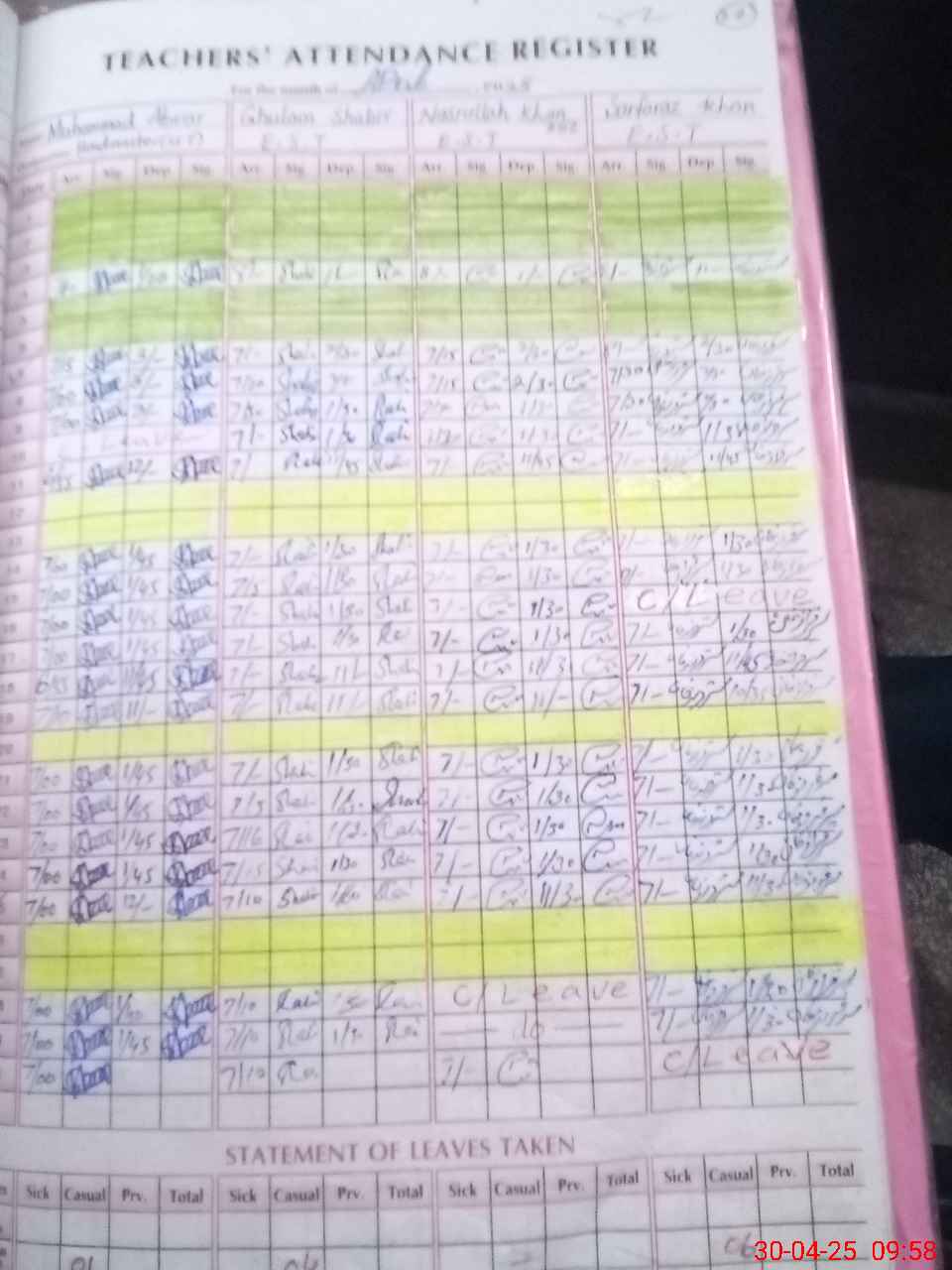 | 36**** | Mu**** Ab**** Na**** | PST | Regular | 0 | 0 | 0 | 0 | 0 | 0 | 0 | 0 | 0 | Exam Duty |