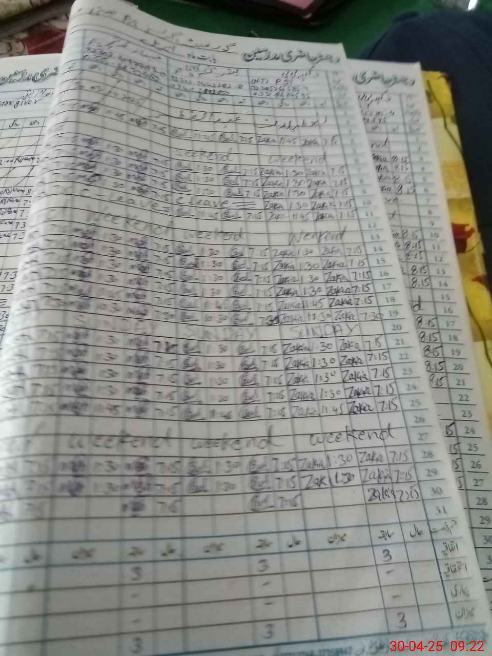 | Leave | Duty | Absent | Maternity | Medical | Ex- Pak |