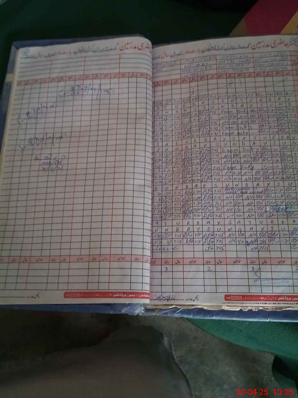 | Leave | Duty | Absent | Maternity | Medical | Ex- Pak |