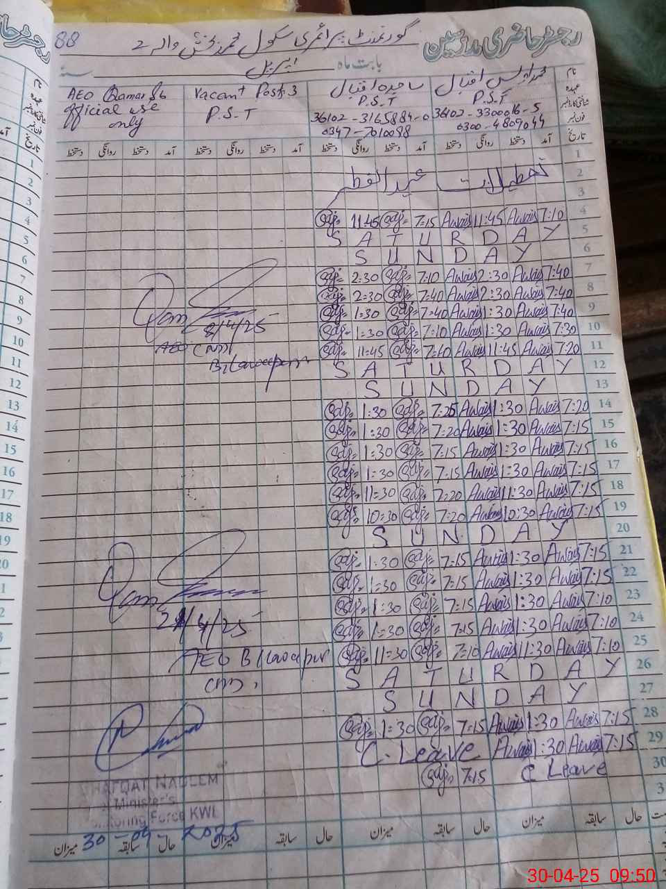| Name: Mu**** Aw**** Iq**** Designation: (School Headmaster's/Headmistress's) PST Phone/Cell Number: 03**** |